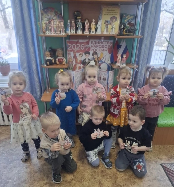 18.02.2026 год. Воспитанники первой младшей группы, под руководством воспитателя Поляковой Е.В., изготовили открытку «Год единства народов России - 2026» (подробнее....)